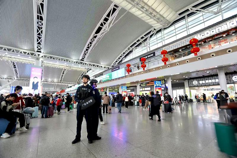 2025年春運(yùn)出行客流將于1月22起逐日迎來(lái)高峰。廣州鐵路公安處管內(nèi)廣州南站、廣州站、廣州白云站等重點(diǎn)車站也逐漸呈現(xiàn)“滿員”狀態(tài)。為確保旅客群眾平安順利乘車,廣州鐵路警方針對(duì)拉客擾序、盜竊詐騙等重點(diǎn)治安問(wèn)題,多措并舉持續(xù)嚴(yán)厲打擊,全力營(yíng)造出行良好環(huán)境。