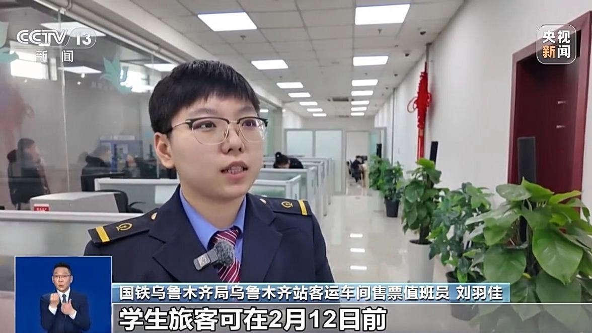 國(guó)鐵烏魯木齊局烏魯木齊站客運(yùn)車間售票值班員 劉羽佳:學(xué)生旅客可在2月12日前,預(yù)約購(gòu)買2月28日(前)的火車票,家庭居住地與學(xué)校所在地不在同一城市,已通過學(xué)生優(yōu)惠資質(zhì)核驗(yàn),且有剩余優(yōu)惠次數(shù)的學(xué)生,都可以在學(xué)生購(gòu)票專區(qū)購(gòu)票。