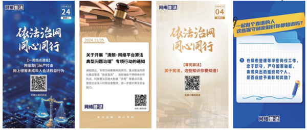 圍繞重點(diǎn)法規(guī)、重要時間節(jié)點(diǎn),做好權(quán)威內(nèi)容轉(zhuǎn)化,推出多形式的法宣產(chǎn)品、交互活動,從單向式教育向互動式、服務(wù)式、場景式傳播轉(zhuǎn)變。