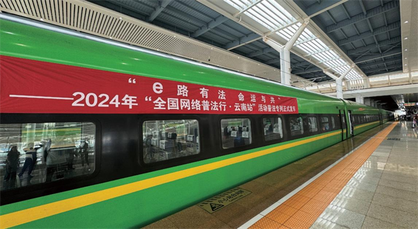 依托中老鐵路的國際知名度和外宣橋梁紐帶功能,聯(lián)合鐵路部門,聯(lián)動州(市)網(wǎng)信和司法部門,在中老鐵路昆明至磨憨段之間打造網(wǎng)絡普法特色主題專列,以“移動普法宣傳站”的形式開展豐富多彩的線上線下普法宣傳活動,開辟網(wǎng)絡普法新場景,讓法律知識變得生動有趣、觸手可及。一是以“e路有法命運與共”冠名主題專列,宣傳宣介我國關于構(gòu)建網(wǎng)絡空間命運共同體的“四項原則”和“五點主張”。二是以中國網(wǎng)絡法治三十年為重點,打造特色主題車廂全面展示中國網(wǎng)絡法治建設成就,普及網(wǎng)絡法律知識,推動尊法學法守法用法日益成為網(wǎng)絡空間廣泛共識和基本準則。三是以線上線下聯(lián)動和中老鐵路沿線站點接力的方式,讓普法更“接地氣”,服務群眾“零距離”。四是以主流媒體強勢宣傳報道和視頻連線相結(jié)合的方式,擴大特色主題專列影響力。