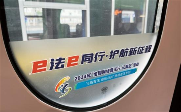 一是打造主題車廂。聚焦“一帶一路”網(wǎng)絡空間安全和沿線群眾在網(wǎng)絡法治領域的熱點問題,根據(jù)復興號CR200J的車型特點,設置“中國網(wǎng)絡法治三十年”“網(wǎng)絡安全”“數(shù)據(jù)安全”“未成年人網(wǎng)絡保護”“數(shù)據(jù)出境之旅”“反網(wǎng)暴凈網(wǎng)行動”“個人信息守護”以及“網(wǎng)絡空間命運共同體”8節(jié)主題車廂,讓車廂內(nèi)部成為網(wǎng)絡普法移動走廊,突出展示新時代中國網(wǎng)絡法治建設理念、實踐成效及交流成果。二是豐富法治內(nèi)容。充分利用車廂內(nèi)鏡框海報、玻璃貼、小桌板貼、行李架彩貼、頭枕片、LED顯示屏等豐富多彩的載體,以口訣、順口溜、圖片、漫畫、金句等形式展示網(wǎng)絡法律知識,打造輕松愉快的移動式學法場景,讓乘客們在享受舒適旅途的同時,也能輕松學習到實用的法律知識,共推出普法圖片50張,漫畫20幅,金句48條。三是互動掃碼學法。在每個座位的頭枕片上印制“法潤彩云南你我共參與”網(wǎng)絡法治競賽二維碼,方便群眾可隨時掃碼開展趣味學法,參與便捷、實用性強,為移動化碎片式學法提供新途徑,吸引246.5萬人次參與答題,訪問量累計超645.8萬次。