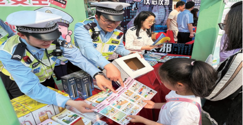 網(wǎng)絡(luò)普法“輕騎兵”在市民公園發(fā)放普法漫畫、普法繪本等宣傳資料