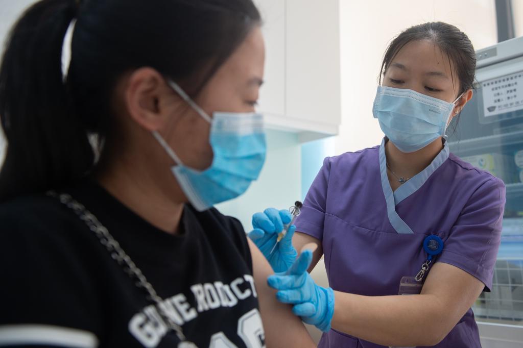 2020年4月3日,博鰲超級醫(yī)院的護(hù)士給一位女士接種HPV疫苗。 新華社記者 張麗蕓 攝