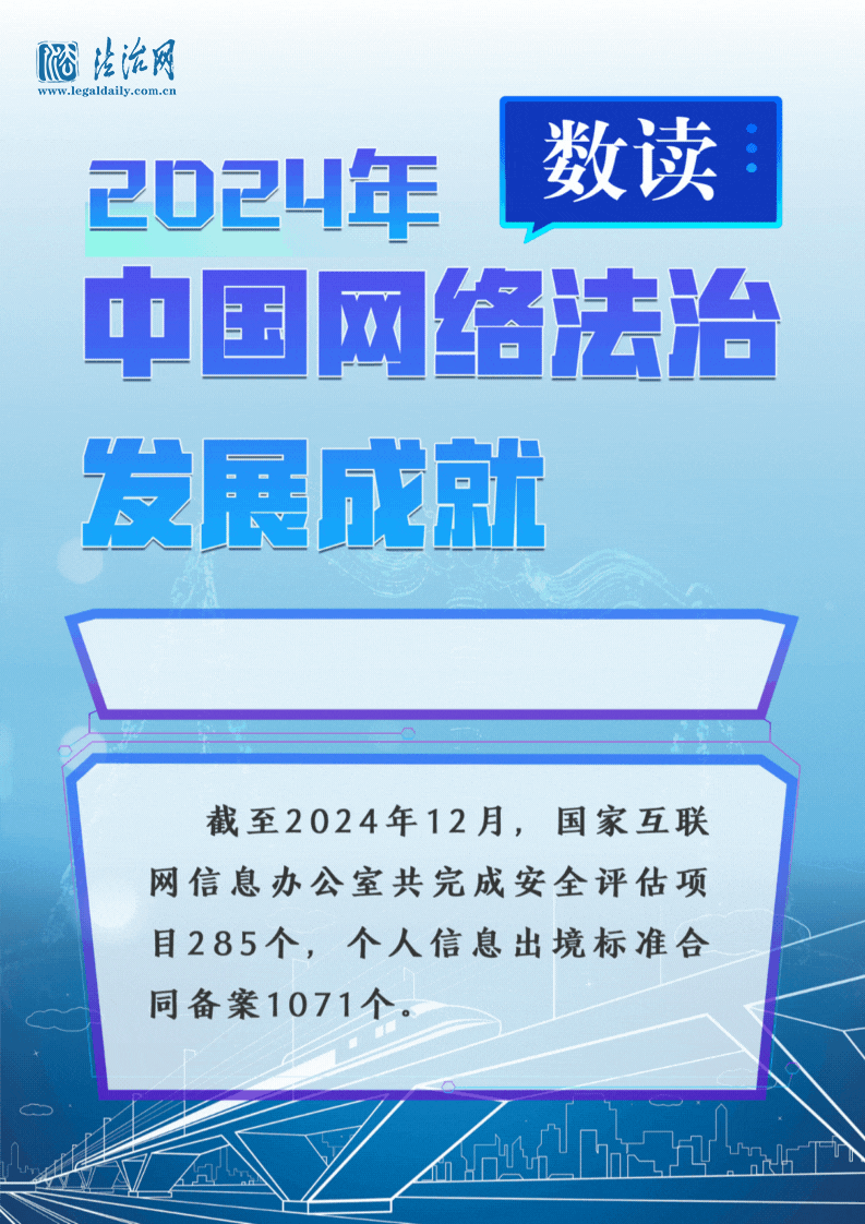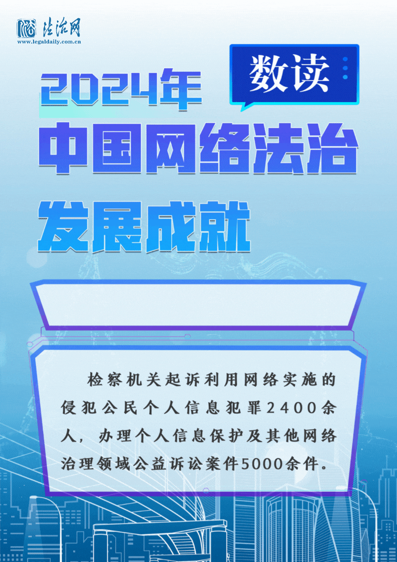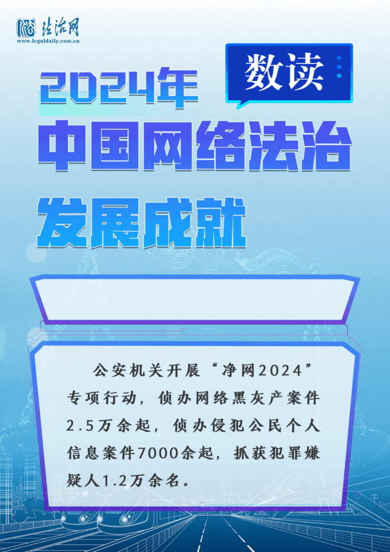 4月27日,國家互聯(lián)網(wǎng)信息辦公室發(fā)布《中國網(wǎng)絡(luò)法治發(fā)展報告(2024年)》。這是首部國家部門層面發(fā)布的網(wǎng)絡(luò)法治綜合性年度報告,既是《中國網(wǎng)絡(luò)法治三十年》報告的續(xù)篇,也是中國網(wǎng)絡(luò)法治發(fā)展年度報告的開篇。讓我們用一組數(shù)據(jù)帶你看我國網(wǎng)絡(luò)法治建設(shè)這一年的成就,感受網(wǎng)絡(luò)法治建設(shè)邁出的堅實步伐。