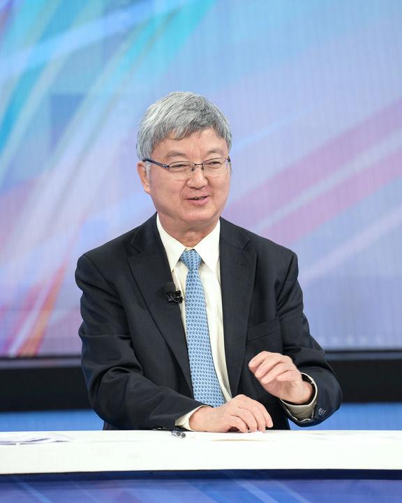 中國國際經濟交流中心資深專家委員朱民在第十五期“中國經濟圓桌會”錄制現場發(fā)言。新華社記者 李賀 攝