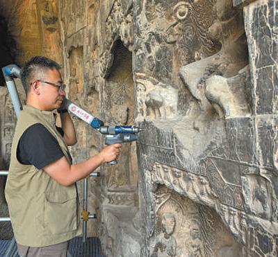 千年前,匠人留下的遮雨石板、石刻窟檐、排水溝等實物,現(xiàn)在仍然發(fā)揮著保護石窟的重要作用,彰顯出古人的智慧。但是,在自然侵蝕下,加上人為因素,龍門石窟一直受到病害侵擾。