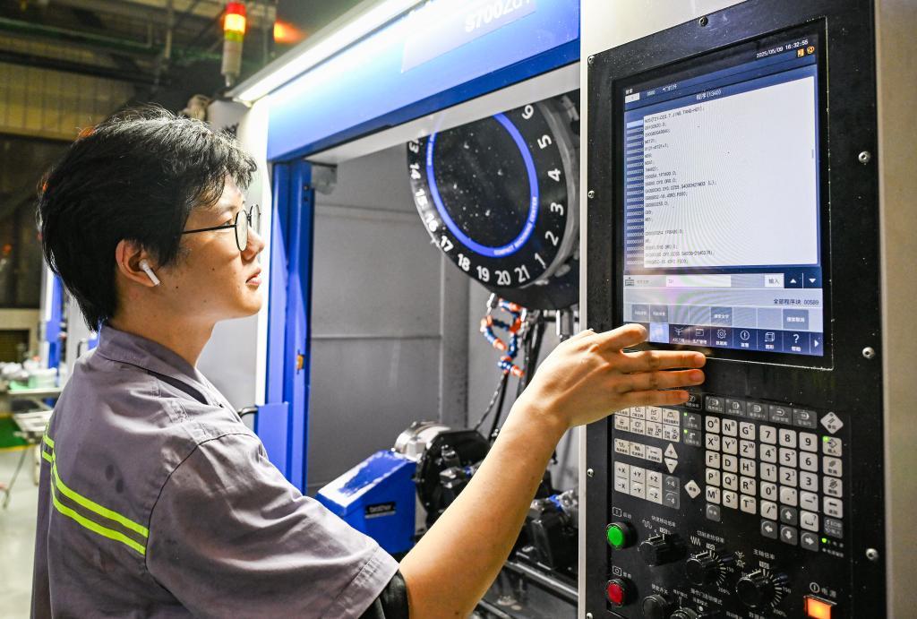 2025年5月9日,工作人員在位于北碚區(qū)的重慶順多利機(jī)車有限責(zé)任公司精工基地作業(yè)。截至2024年底,北碚區(qū)民營經(jīng)營主體占比超97%,民營經(jīng)濟(jì)貢獻(xiàn)了80%以上的城鎮(zhèn)就業(yè)、90%以上的科技創(chuàng)新平臺。新華社記者 王全超 攝