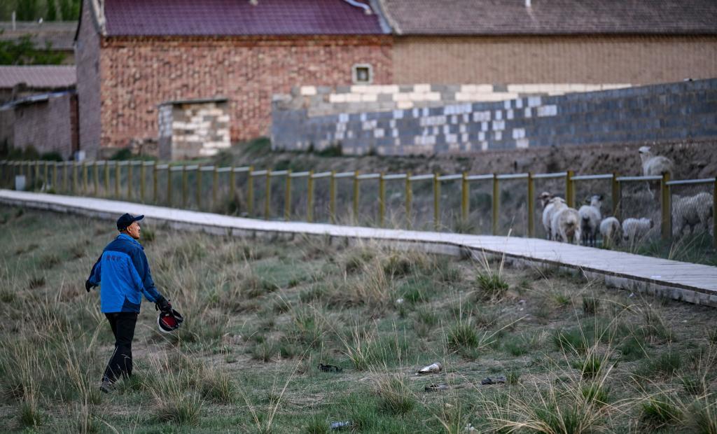 5月11日,李世翔將誤入柳州城址的羊群趕出防護欄。