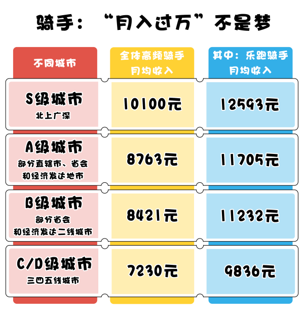 某外賣平臺2025年第一季度財(cái)報(bào)數(shù)據(jù)顯示,全國高頻騎手月均收入?yún)^(qū)間為7230元至10100元。在北上廣深等城市,技能更熟練的樂跑騎手收入優(yōu)勢更為明顯,月均可達(dá)12593元。