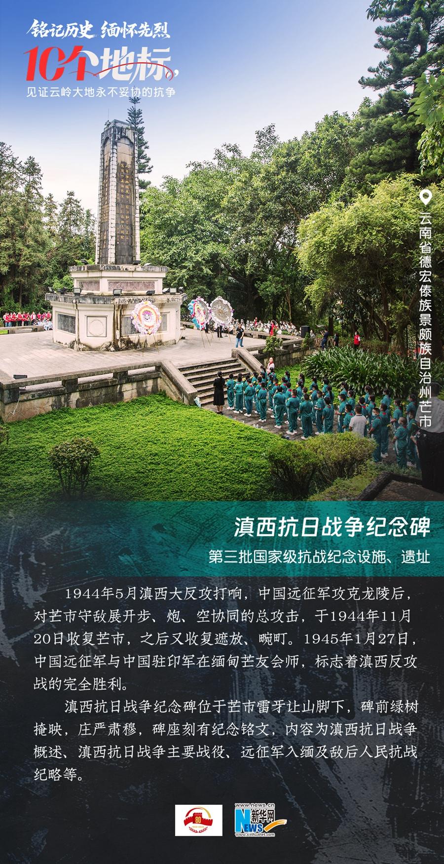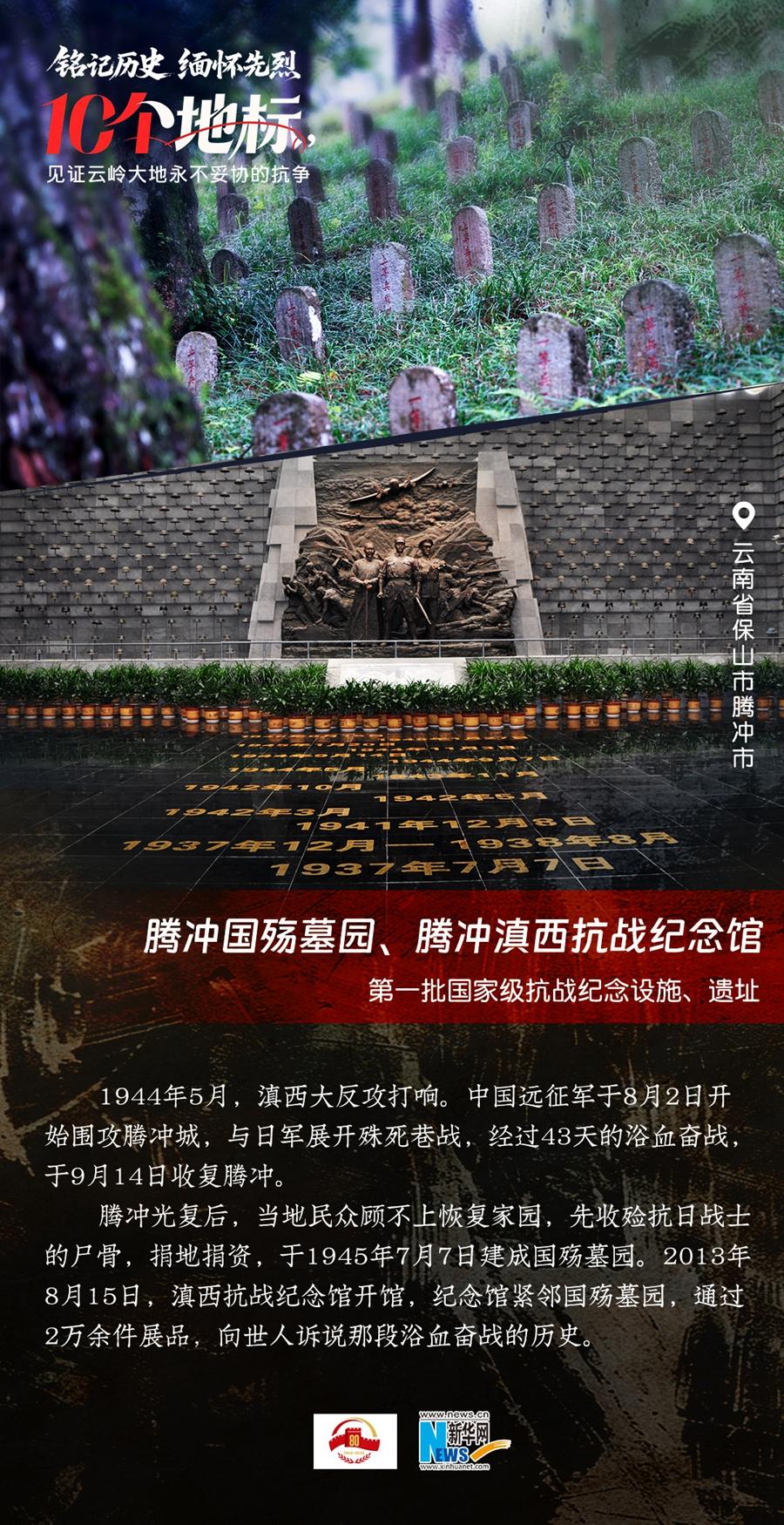 80年過去,曾經(jīng)的戰(zhàn)場(chǎng)硝煙雖散,但英氣永存。在國(guó)務(wù)院公布的前三批國(guó)家級(jí)抗戰(zhàn)紀(jì)念設(shè)施、遺址名錄中,云南省共有10個(gè),分別為騰沖國(guó)殤墓園、騰沖滇西抗戰(zhàn)紀(jì)念館,龍陵抗日戰(zhàn)爭(zhēng)紀(jì)念館,國(guó)立西南聯(lián)合大學(xué)舊址,抗戰(zhàn)勝利紀(jì)念堂,松山戰(zhàn)役舊址,南洋華僑機(jī)工回國(guó)抗日紀(jì)念碑,怒江駝峰航線紀(jì)念館,施甸縣抗日江防遺跡群,滇緬公路惠通橋,滇西抗日戰(zhàn)爭(zhēng)紀(jì)念碑。它們承載著國(guó)人共同的歷史記憶與民族情感,也為我們學(xué)習(xí)和傳承抗戰(zhàn)精神提供了現(xiàn)實(shí)條件。