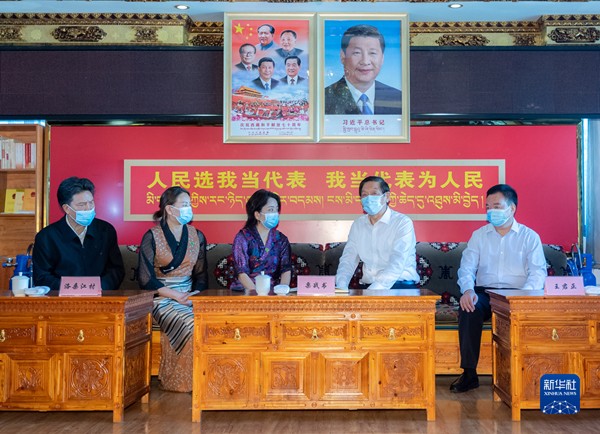 7月12日至15日,中共中央政治局常委、全國(guó)人大常委會(huì)委員長(zhǎng)栗戰(zhàn)書在西藏就青藏高原生態(tài)保護(hù)立法進(jìn)行調(diào)研。這是7月15日,栗戰(zhàn)書在拉薩城關(guān)區(qū)功德林街道,調(diào)研基層人大工作情況。新華社記者?翟健嵐?攝