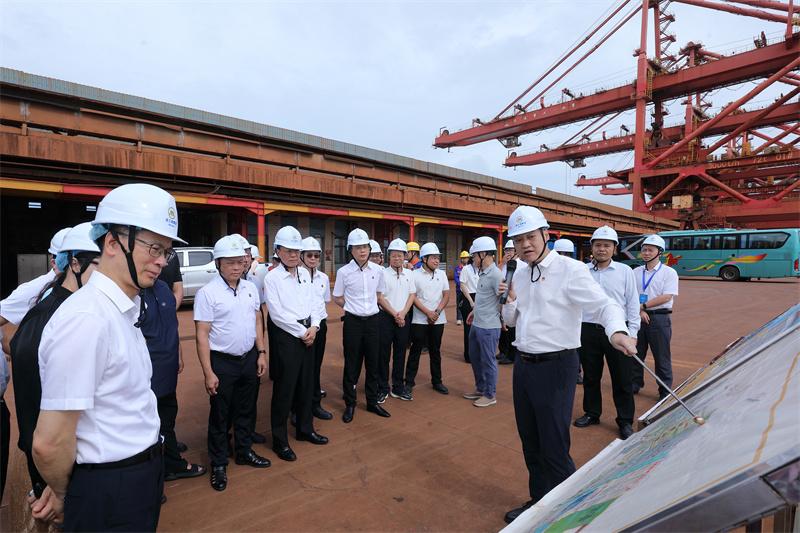 巨輪穿梭,吊臂揮舞。在湛江港繁忙的作業(yè)區(qū),代表們實地察看港口作業(yè)流程和智慧化建設,詢問了解港口年吞吐量、航線布局等運營數(shù)據(jù),與港口負責人交流海事審判對港口物流發(fā)展的保障作用。