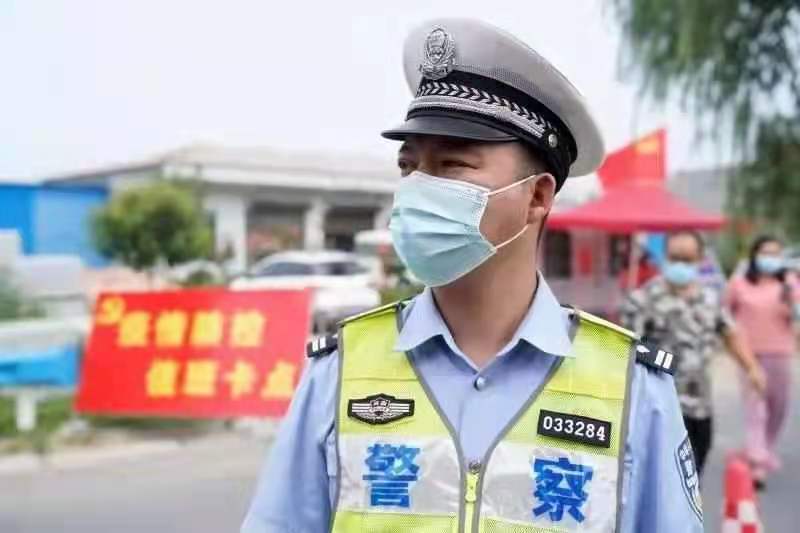 這已經(jīng)是他連續(xù)奮戰(zhàn)在疫情防控卡點(diǎn)的第七天,三伏烈日,汗流浹背,警服濕了干,干了又濕,口罩的形狀烙在了黝黑的臉龐,沙啞的嗓子,不停地往嘴里放潤(rùn)喉片。