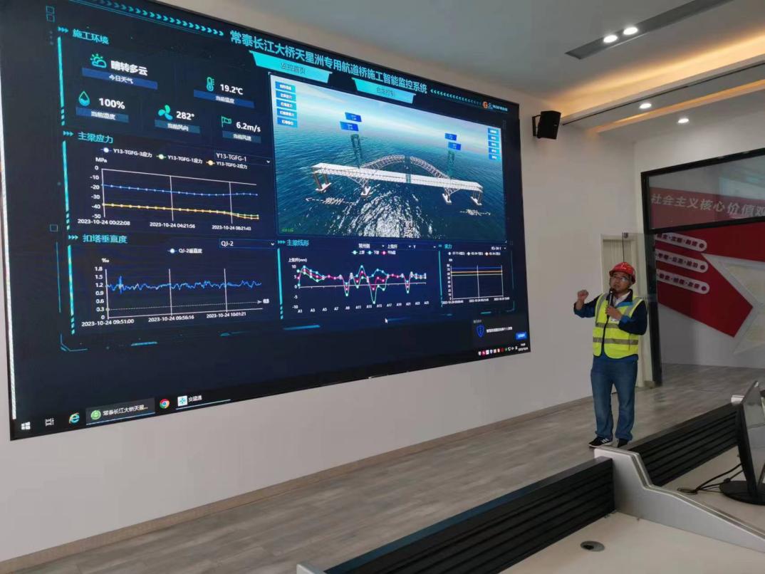 數(shù)字孿生系統(tǒng),不僅方便了解施工現(xiàn)狀,而且能進(jìn)行仿真推演,優(yōu)化施工方案。在天星洲專(zhuān)用航道橋施工過(guò)程中,利用數(shù)字孿生技術(shù),搭建云端無(wú)線(xiàn)采集系統(tǒng),全方位實(shí)時(shí)獲取橋梁施工相關(guān)數(shù)據(jù)。讓數(shù)據(jù)“在電腦上多跑路”,對(duì)施工控制數(shù)據(jù)進(jìn)行實(shí)時(shí)分析,實(shí)時(shí)預(yù)警,確保結(jié)構(gòu)施工過(guò)程始終處于可控狀態(tài);以不同顏色區(qū)分當(dāng)前桿件安裝狀態(tài),實(shí)現(xiàn)工序級(jí)別的形象進(jìn)度展示及基于工序的質(zhì)量驗(yàn)收;而且平臺(tái)內(nèi)可以對(duì)施工工序模擬,保障現(xiàn)場(chǎng)構(gòu)件保供安排,確保施工質(zhì)量、物資調(diào)度、進(jìn)度安排合理可控……