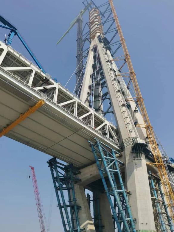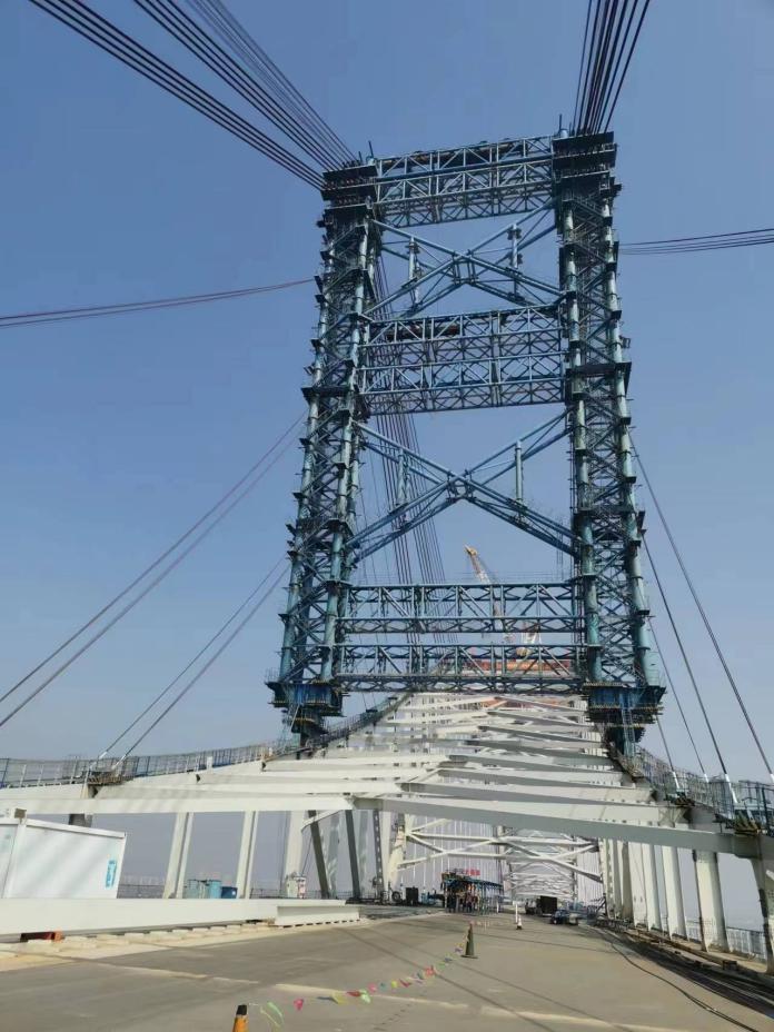 與張靖皋長(zhǎng)江大橋的懸索式設(shè)計(jì)不同,常泰長(zhǎng)江大橋是目前在建的世界最大跨度鋼桁梁斜拉橋。據(jù)中交二航局常泰項(xiàng)目常務(wù)副經(jīng)理王輝介紹,由于長(zhǎng)江中下游河段航運(yùn)繁忙,要保證主航道橋主跨達(dá)到1208米,以充分發(fā)揮“黃金水道”的“黃金效益”。而為了牢牢“拉住”大跨度的橋面,高達(dá)350米“世界最高橋塔”也應(yīng)運(yùn)而生。