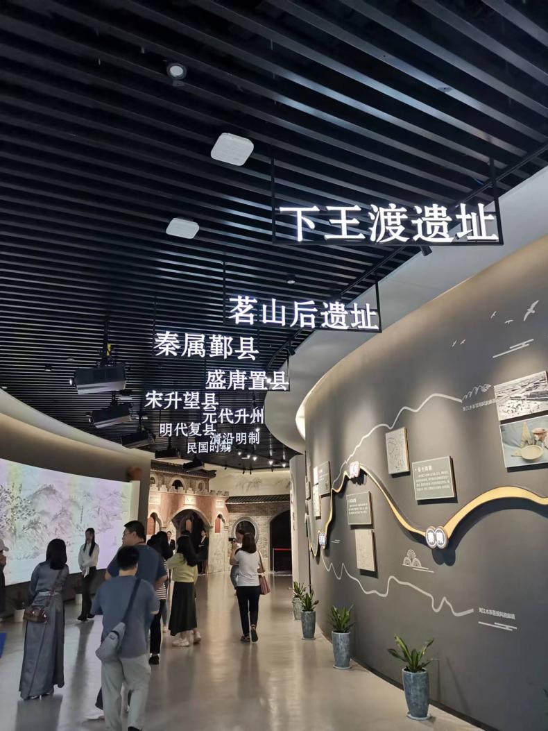 科普中心館內(nèi)布展面積約5000㎡,以“最美最好”為主線串聯(lián)序廳、自然歷史文化廳、規(guī)劃模型廳、全域旅游廳、共享城市廳、碗幕影院廳和尾廳共7個展廳,借助異彩紛呈的現(xiàn)代科技手段,全面展示奉化悠久歷史、當(dāng)前“追趕跨越”的發(fā)展布局和未來“后來居上”的可期愿景。透過“歲月之美、詩畫之美、美好藍(lán)圖、美好家園”四大內(nèi)容板塊的展示,記者充分感受到奉化的城市歷史之悠久、生態(tài)人文之美麗、新城建設(shè)之美好。據(jù)奉化區(qū)人大代表、中交城投寧波區(qū)域分公司總經(jīng)理劉濤介紹,作為集規(guī)劃展示、學(xué)術(shù)研究、文化交流、教育實踐、商務(wù)休閑等多功能為一體的城市公共空間,科普中心已成為外界了解奉化的重要窗口,被譽(yù)為奉化“城市之眼”。