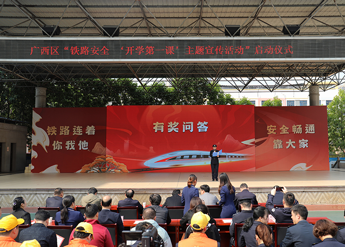 活動(dòng)現(xiàn)場,錦華小學(xué)學(xué)生“紅領(lǐng)巾護(hù)路隊(duì)”代表宣讀愛路護(hù)路倡議書;學(xué)生表演《愛路護(hù)路我能行》節(jié)目,以快板和舞蹈的形式宣傳鐵路安全知識(shí);鐵路青年志愿者通過護(hù)路快板表演,將鐵路安全小知識(shí)改編成朗朗上口的順口溜,讓人印象深刻;南寧站派出所民警上臺(tái)講解鐵路安全注意事項(xiàng),進(jìn)一步提升未成年人法律意識(shí)和安全意識(shí)。