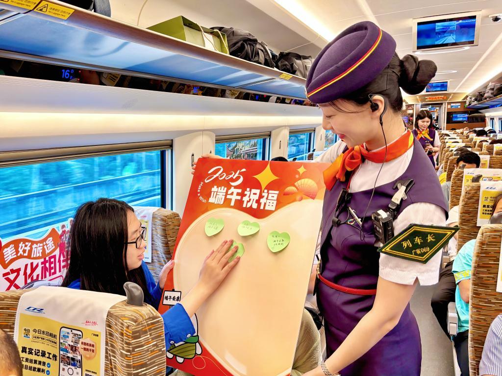 2025年端午假期,恰逢“我的鐵路風(fēng)景”主題宣傳第二季活動(dòng)火熱開(kāi)展,鐵路部門在全國(guó)1000余個(gè)客運(yùn)站車組織啟動(dòng)“我的鐵路風(fēng)景:美好旅途 粽享端午”文化互動(dòng)活動(dòng),將傳統(tǒng)文化元素融入服務(wù)過(guò)程,讓中華優(yōu)秀傳統(tǒng)文化成為最美的風(fēng)景。