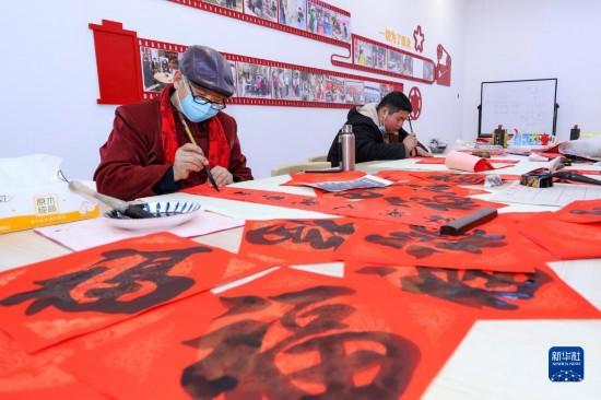 春節(jié)臨近,多地組織書法志愿者走進(jìn)社區(qū)、工地等場所,為人們書寫春聯(lián)和福字,迎接春節(jié)的到來。