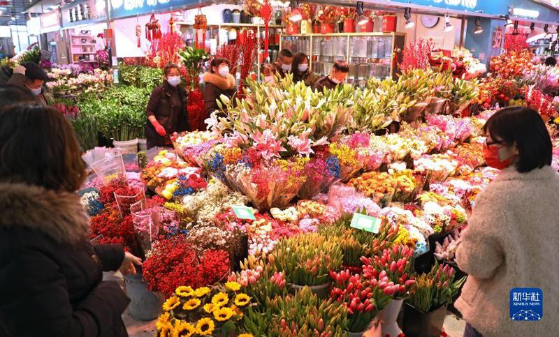 新春將至,遼寧省沈陽市各花卉市場一片姹紫嫣紅,市民紛紛選購鮮花綠植,迎接兔年春節(jié)的到來。