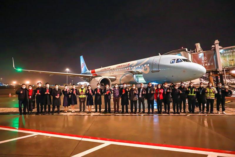 1月22日早晨5點(diǎn)30分許,長(zhǎng)龍航空一線運(yùn)行保障部門(mén)的工作人員合影。(受訪者供圖)