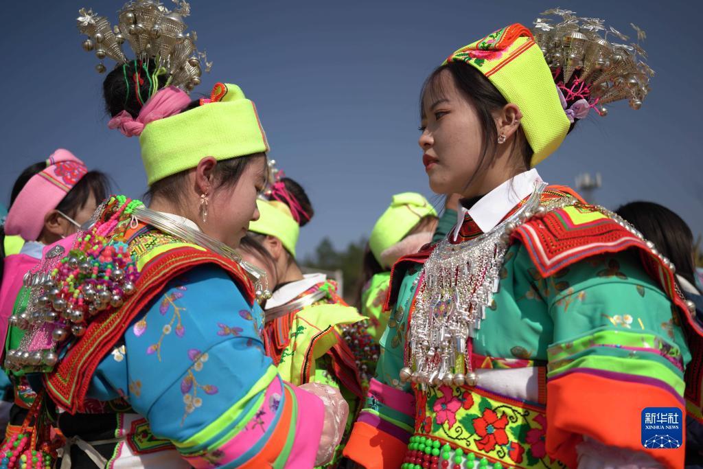 1月29日,苗族群眾在中排村參加“跳月”活動。