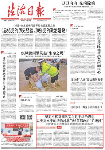 王東峰:黨的十八大以來,習(xí)近平總書記親自謀劃、親自部署、親自推動全面依法治國,創(chuàng)造性地提出了一系列新理念新思想新戰(zhàn)略,形成了習(xí)近平法治思想。這一思想博大精深、內(nèi)涵豐富、邏輯嚴(yán)密、系統(tǒng)完備,是我們黨領(lǐng)導(dǎo)法治建設(shè)豐富實踐和寶貴經(jīng)驗的科學(xué)總結(jié),是馬克思主義法治理論中國化最新成果,為中國特色社會主義法治體系和社會主義法治國家建設(shè)提供了強大思想武器。我們堅持把學(xué)習(xí)貫徹習(xí)近平法治思想作為重大政治責(zé)任和政治任務(wù),作為增強“四個意識”、堅定“四個自信”、做到“兩個維護”的現(xiàn)實檢驗,不折不扣抓好落實,堅定不移走中國特色社會主義法治道路。