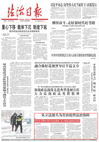 法律是治國之重器,良法是善治之前提,立法之于治國理政具有源頭性的重要意義。在這一年的時間里,在習近平法治思想指引下,我們的立法工作堅持黨的領導,堅持以人民為中心,立法步伐不斷加快,數(shù)據(jù)安全法、個人信息保護法、鄉(xiāng)村振興促進法、市場主體登記管理條例、醫(yī)療保障基金使用監(jiān)督管理條例等密集出臺;科學立法、民主立法、依法立法深入推進,重大立法項目取得積極進展;在法治下推進改革,在改革中完善法治,推動與改革相關聯(lián)、相配套的法律法規(guī)立改廢釋工作……