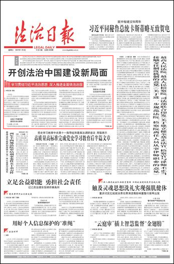 在中央全面依法治國工作會(huì)議召開一周年之際,本報(bào)從11月3日起開設(shè)“學(xué)習(xí)貫徹習(xí)近平法治思想 深入推進(jìn)全面依法治國”專欄,全方位多維度總結(jié)推介各地各部門深入學(xué)習(xí)貫徹習(xí)近平法治思想,學(xué)思踐悟,指導(dǎo)實(shí)踐,推進(jìn)全面依法治國上臺(tái)階的具體舉措、生動(dòng)實(shí)踐和成功經(jīng)驗(yàn),發(fā)揮法治在國家治理體系和治理能力現(xiàn)代化中的積極作用,不斷開創(chuàng)法治中國建設(shè)新局面。敬請關(guān)注。
