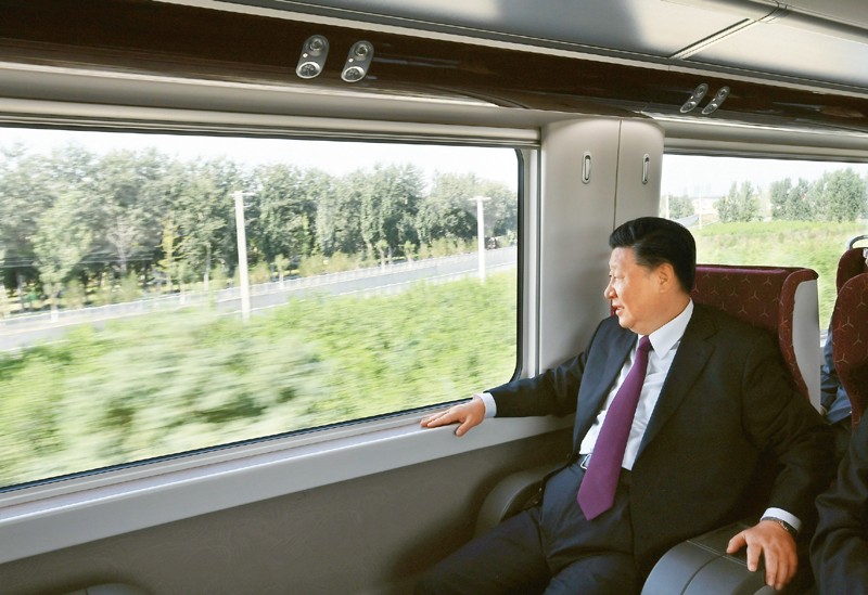 2019年9月25日上午,北京大興國(guó)際機(jī)場(chǎng)投運(yùn)儀式在北京舉行。中共中央總書(shū)記、國(guó)家主席、中央軍委主席習(xí)近平出席儀式,宣布機(jī)場(chǎng)正式投運(yùn)并巡覽航站樓。這是習(xí)近平乘坐軌道列車前往北京大興國(guó)際機(jī)場(chǎng)。 新華社記者 謝環(huán)馳/攝