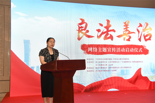 9月6日,由中央網(wǎng)信辦網(wǎng)絡(luò)傳播局、中央政法委宣傳教育局指導(dǎo),法治網(wǎng)及北京、浙江、廣東、陜西網(wǎng)信辦主辦,中國(guó)互聯(lián)網(wǎng)發(fā)展基金會(huì)中國(guó)正能量網(wǎng)絡(luò)傳播專(zhuān)項(xiàng)基金提供支持的“良法善治”網(wǎng)絡(luò)主題宣傳活動(dòng)在浙江杭州啟動(dòng)。圖為活動(dòng)現(xiàn)場(chǎng)。