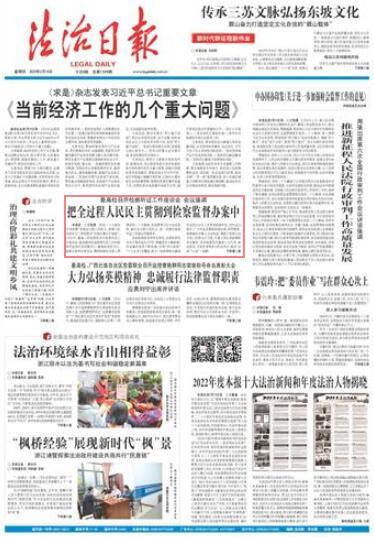 本報(bào)訊 記者張昊 黨的二十大報(bào)告專章部署“發(fā)展全過程人民民主,保障人民當(dāng)家作主”,特別要求“完善辦事公開制度”。2月15日,最高人民檢察院召開檢察聽證工作座談會(huì),就加強(qiáng)和改進(jìn)檢察聽證工作向檢察聽證員代表問需求計(jì)。最高檢黨組書記、檢察長張軍出席會(huì)議,圍繞檢察機(jī)關(guān)深入貫徹黨的二十大精神,全面貫徹習(xí)近平法治思想,踐行全過程人民民主,進(jìn)一步做好檢察聽證工作提出明確要求。