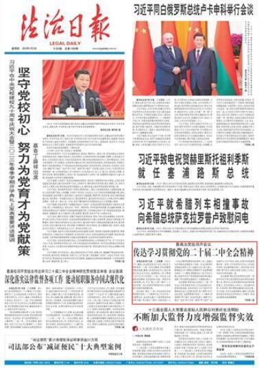 本報(bào)北京3月1日訊 記者張晨 3月1日下午,最高人民法院黨組召開(kāi)會(huì)議,傳達(dá)學(xué)習(xí)貫徹黨的二十屆二中全會(huì)精神,研究部署貫徹落實(shí)措施。最高人民法院黨組書(shū)記、院長(zhǎng)周強(qiáng)主持會(huì)議并講話,強(qiáng)調(diào)要深入學(xué)習(xí)貫徹習(xí)近平總書(shū)記在黨的二十屆二中全會(huì)上的重要講話精神,把思想和行動(dòng)統(tǒng)一到黨中央決策部署上來(lái),牢記“國(guó)之大者”,落實(shí)“三個(gè)更好統(tǒng)籌”,充分發(fā)揮審判職能作用,以高質(zhì)量司法服務(wù)高質(zhì)量發(fā)展。