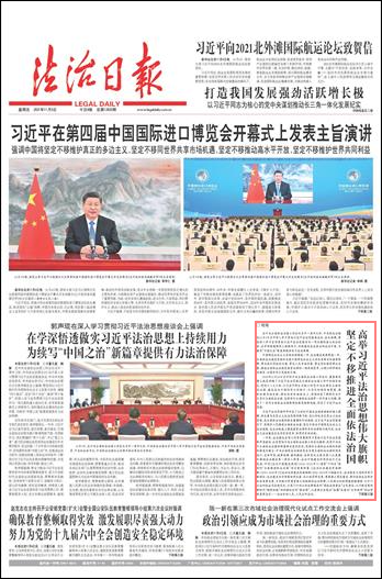 在中央全面依法治國工作會議召開一周年之際,中央依法治國辦11月4日召開深入學(xué)習(xí)貫徹習(xí)近平法治思想座談會。會議強調(diào),要把深入學(xué)習(xí)宣傳貫徹習(xí)近平法治思想作為一項長期的重大政治任務(wù),在學(xué)深悟透做實上持續(xù)用力,加快建設(shè)良法善治的法治中國,為續(xù)寫“中國之治”新篇章提供有力法治保障。