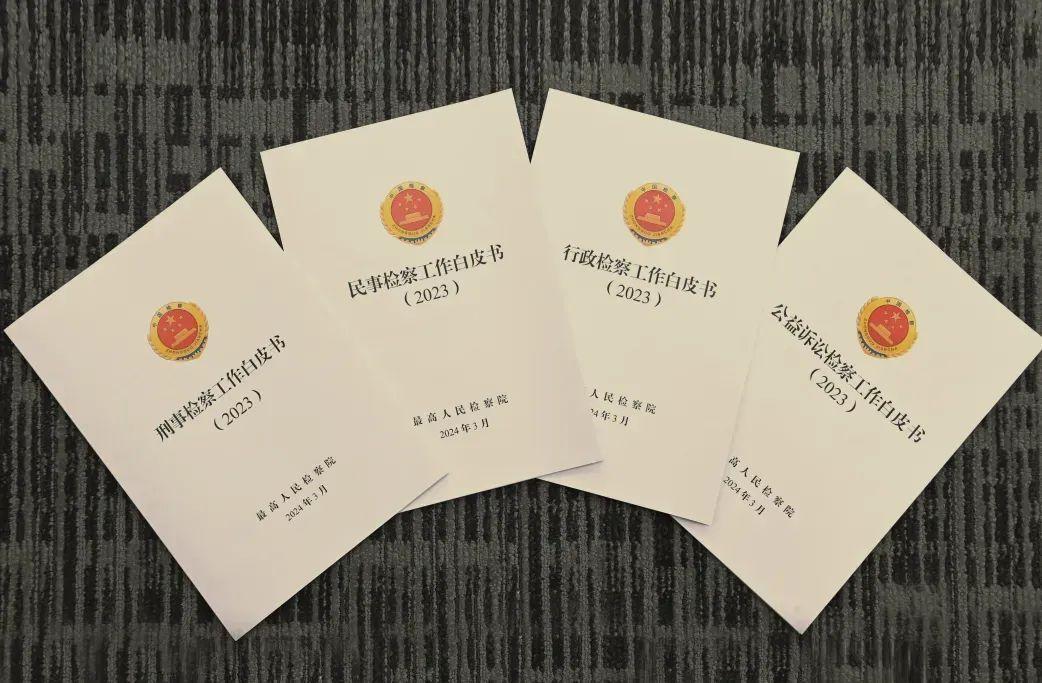 圖為2024年3月9日最高人民檢察院發(fā)布的2023年“四大檢察”工作白皮書。白皮書按照刑事、民事、行政、公益訴訟檢察四個條線,全方位呈現2023年檢察工作新進展新成效。最高人民檢察院供圖