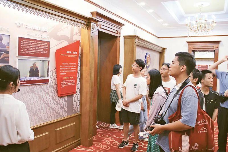 綏芬河國(guó)家安全教育展館面積約1100平方米,由序廳、總體國(guó)家安全觀、無名豐碑、周恩來展區(qū)等8個(gè)部分組成,展示了總體國(guó)家安全觀、黨的隱蔽戰(zhàn)線光輝歷史、當(dāng)前斗爭(zhēng)形勢(shì)等內(nèi)容。李大釗、周恩來等老一輩革命家在綏芬河出入境蘇聯(lián)時(shí)曾秘密下榻于此。作為早期紅色秘密國(guó)際通道、秘密交通線掩護(hù)站點(diǎn),展館建筑如今成為珍貴的紅色革命歷史遺址。圖為2023年8月15日,大學(xué)生在展館內(nèi)參觀學(xué)習(xí)。國(guó)安宣工作室供圖