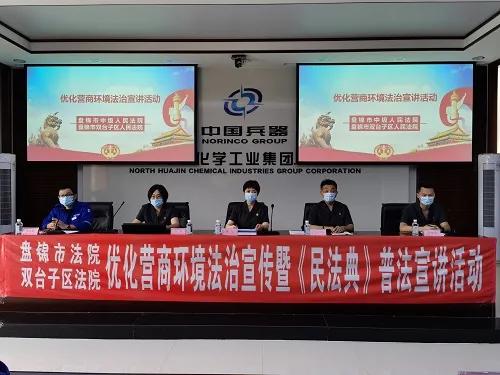 為深入學(xué)習(xí)貫徹習(xí)近平總書(shū)記系列重要講話精神特別是關(guān)于優(yōu)化營(yíng)商環(huán)境建設(shè)的重要講話和批示,全面落實(shí)遼寧省高院工作要求和盤(pán)錦市委、市政府的具體部署,抓好《遼寧省優(yōu)化營(yíng)商環(huán)境條例》、《民法典》貫徹落實(shí) ,積極推進(jìn)我市法治化營(yíng)商環(huán)境建設(shè)。8月20日下午,盤(pán)錦市中級(jí)人民法院、雙臺(tái)子區(qū)人民法院共同組織普法宣講員到北方華錦化學(xué)工業(yè)集團(tuán)有限公司,開(kāi)展“優(yōu)化營(yíng)商環(huán)境”法治宣講暨《民法典》普法宣傳活動(dòng)。