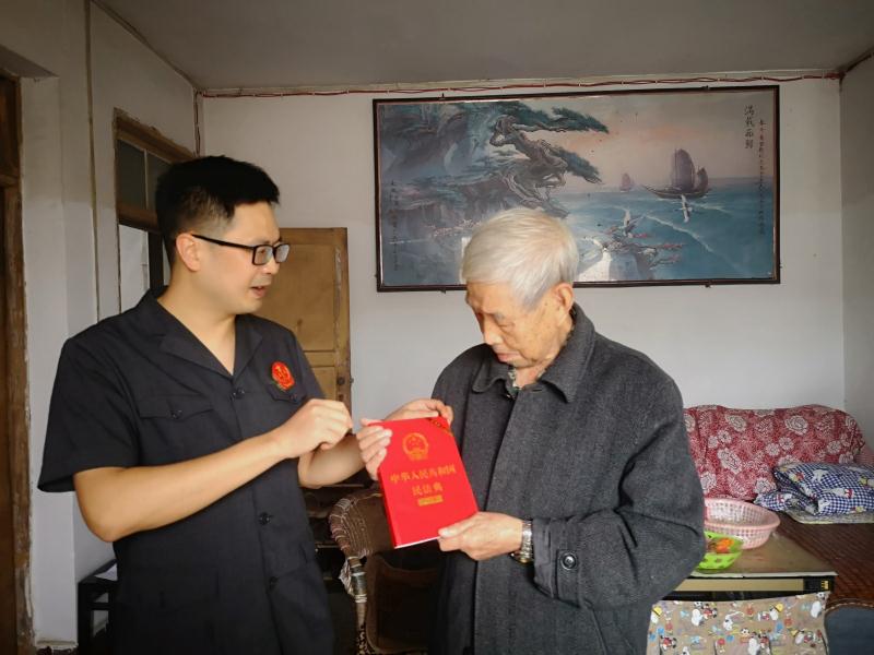 鑒于2021年1月1日即將施行的《民法典》合同編與現(xiàn)行合同法相比存在部分變化,為便于黃老更進(jìn)一步了解即將施行的民法典合同編內(nèi)容,大觀法庭決定將《民法典》送給黃老。考慮到黃老年歲已大,行動(dòng)不便,法庭干警親自上門將民法典送到了黃老手里,劉小彬還為黃老講述《民法典》中的亮點(diǎn)內(nèi)容及合同編的變化,并解答黃老及家屬關(guān)于法律問題的咨詢。