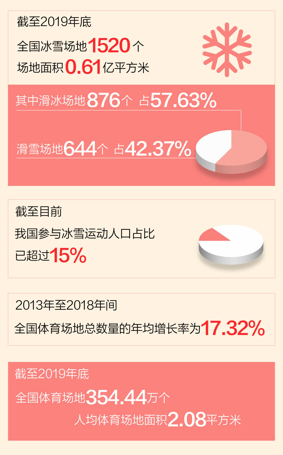 “全國(guó)大眾冰雪季”“中國(guó)冰雪大會(huì)”……從北方到各地,從冬季到四季,群眾性冰雪活動(dòng)正開(kāi)展得如火如荼,為全民健身增添了更加多元多彩的內(nèi)容。2013年至2018年間,包括冰雪運(yùn)動(dòng)在內(nèi)的全國(guó)體育場(chǎng)地總數(shù)量年均增長(zhǎng)率為17.32%,努力滿足著人民群眾不斷增長(zhǎng)的運(yùn)動(dòng)健身需要;各級(jí)各類群眾性體育賽事活動(dòng)不斷豐富,每年參與總?cè)藬?shù)超過(guò)1億人次,城鄉(xiāng)居民參加過(guò)群眾性體育賽事或展示活動(dòng)的比例分別達(dá)到56.18%和59.36%。神州大地生機(jī)勃勃,全民健身蔚為風(fēng)尚,成為全體人民增強(qiáng)體魄、健康生活的基礎(chǔ)和保障。
