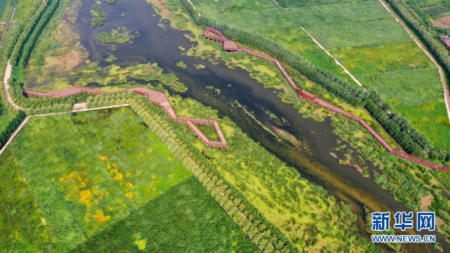 經(jīng)過(guò)遼河流域系統(tǒng)治理和生態(tài)修復(fù)后形成的四平市西湖濕地公園(2020年8月4日攝,無(wú)人機(jī)照片)。新華社記者 張楠 攝