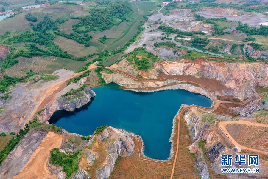 在四平市梨樹(shù)縣孟家?guī)X鎮(zhèn)馬家油坊村,實(shí)施礦山復(fù)綠生態(tài)修復(fù)工程后形成的“小天池”景區(qū)(2020年6月22日攝,無(wú)人機(jī)照片)。新華社記者 張楠 攝