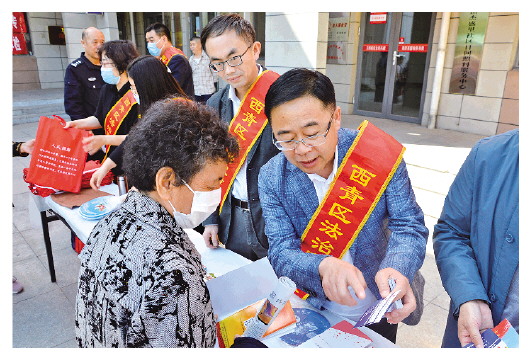 圖為天津市西青區(qū)司法局“法律服務(wù)輕騎兵”向群眾介紹便民聯(lián)系卡。法治日?qǐng)?bào)通訊員 張鵬 攝