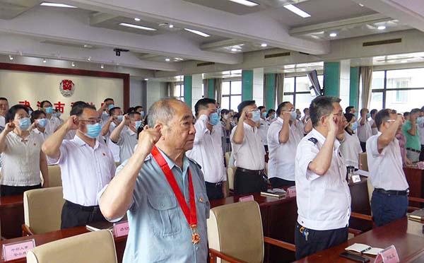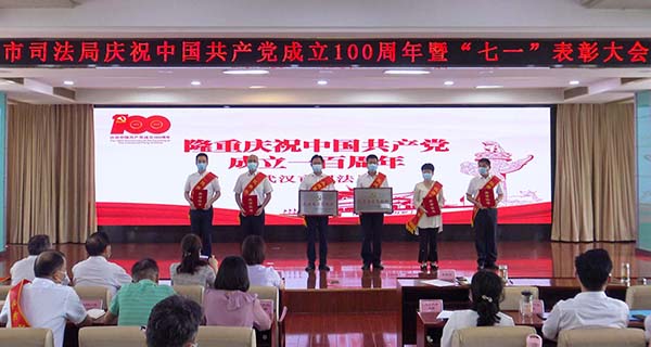 6月24日下午,武漢市司法局舉行慶祝中國共產(chǎn)黨成立100周年暨“七一”表彰大會(huì)。在老黨員帶領(lǐng)下,新黨員代表進(jìn)行入黨宣誓,“兩優(yōu)一先”代表及參會(huì)人員重溫入黨誓詞。