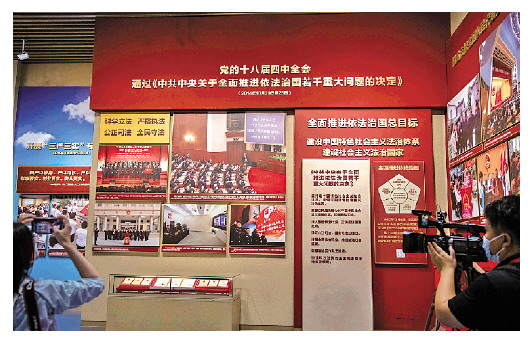 2021年6月25日,媒體記者在中國(guó)共產(chǎn)黨歷史展覽館拍攝法治建設(shè)成就相關(guān)展板。 法治日?qǐng)?bào)全媒體記者 王建軍 攝