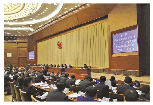 2013年12月23日,十二屆全國(guó)人大常委會(huì)第六次會(huì)議舉行第一次全體會(huì)議,審議行政訴訟法修正案草案。 (資料圖片)