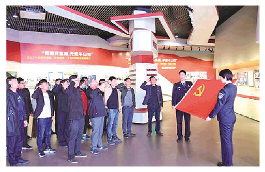 2021年4月11日,參觀者在楓橋經(jīng)驗(yàn)陳列館重溫入黨誓詞。 新華社記者 翁忻旸 攝