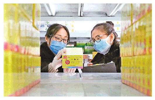 2020年2月6日,山東省無(wú)棣縣市場(chǎng)監(jiān)督管理局執(zhí)法人員在一家連鎖藥店對(duì)藥品進(jìn)行監(jiān)督抽檢。 新華社記者 陳子慶 攝