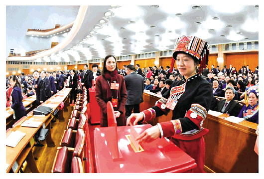 2018年3月11日,十三屆全國(guó)人大一次會(huì)議在北京人民大會(huì)堂舉行第三次全體會(huì)議。這是代表投票表決憲法修正案草案。 新華社記者 饒愛(ài)民 攝
