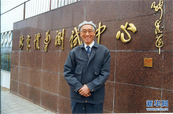 上世紀(jì)90年代,陸元九在北京慣導(dǎo)測試中心調(diào)研時(shí)在門前留影。新華社發(fā)(中國航天科技集團(tuán)供圖)