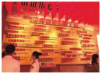 在人民軍隊(duì)?wèi)c祝中國共產(chǎn)黨成立100周年主題展覽展廳,有一面紅墻格外引人注意,吸引了不少參觀者駐足觀看。